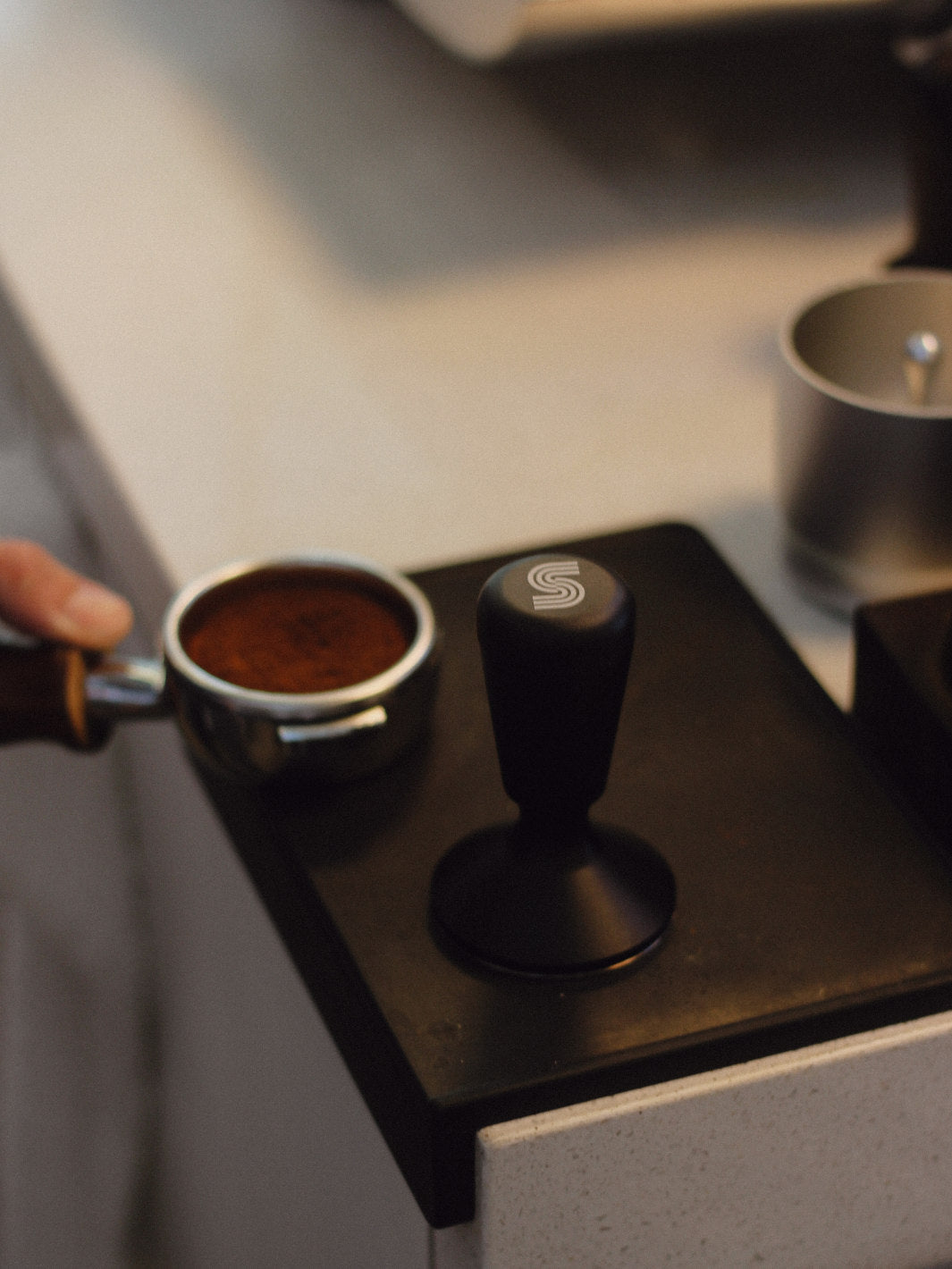 Dès que vous tenez le supergood GripTamp™, vous comprenez qu’il a été conçu pour les baristas professionnels. Sa poignée facile à saisir, dotée d’un revêtement antidérapant, offre confort et assurance dans un café achalandé, un chariot espresso ou un bar espresso à la maison.