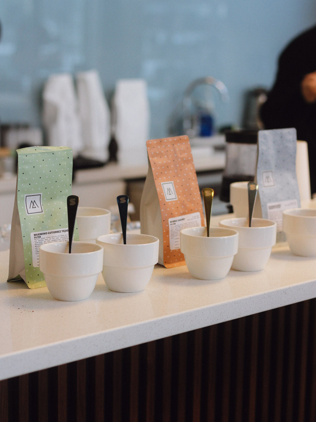 - Ayez un ou plusieurs cafés, une cuillère de cupping et quelques tasses uniformes de 6 à 8 oz.